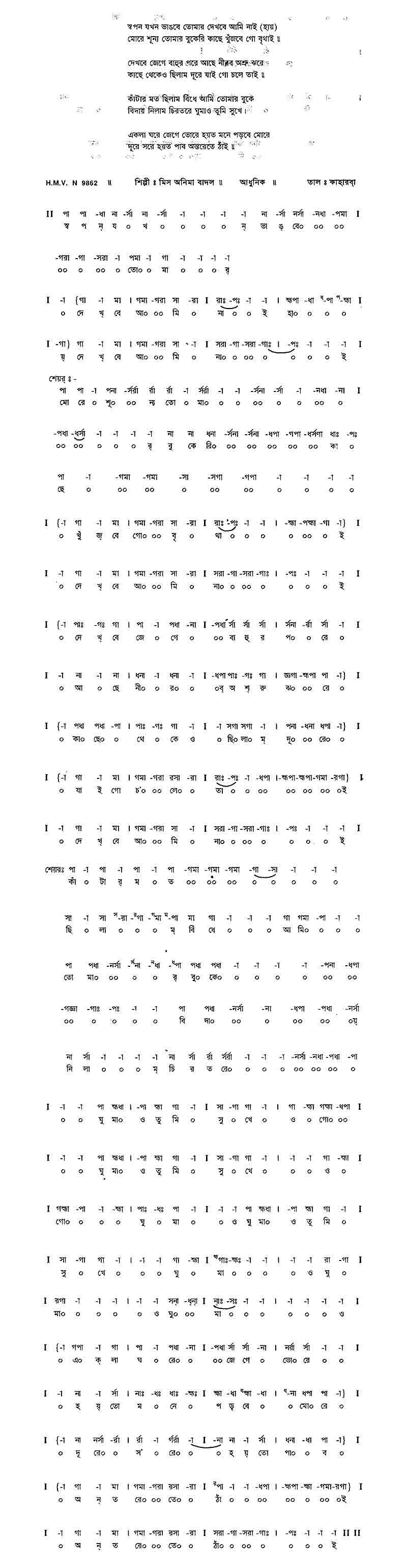 স্বপন যখন ভাঙবে তোমার দেখবে আমি নাই।