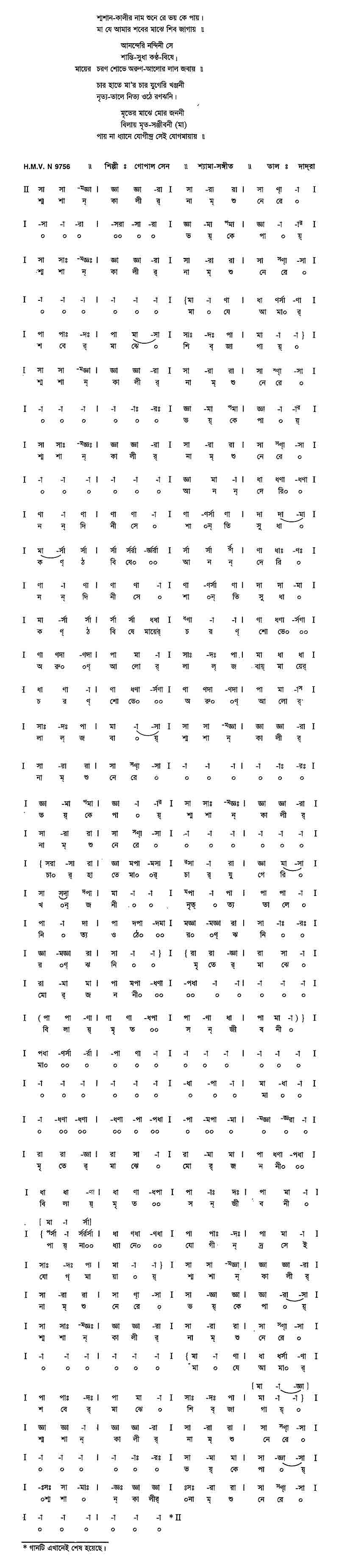 শ্মশান-কালীর নাম শুনে রে ভয় কে পায়।