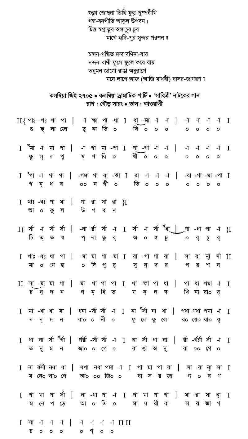 শুক্লা জোছনা তিথি, ফুল্ল পুষ্পবীথি গন্ধ-বন-গীতি আকুল উপবন।