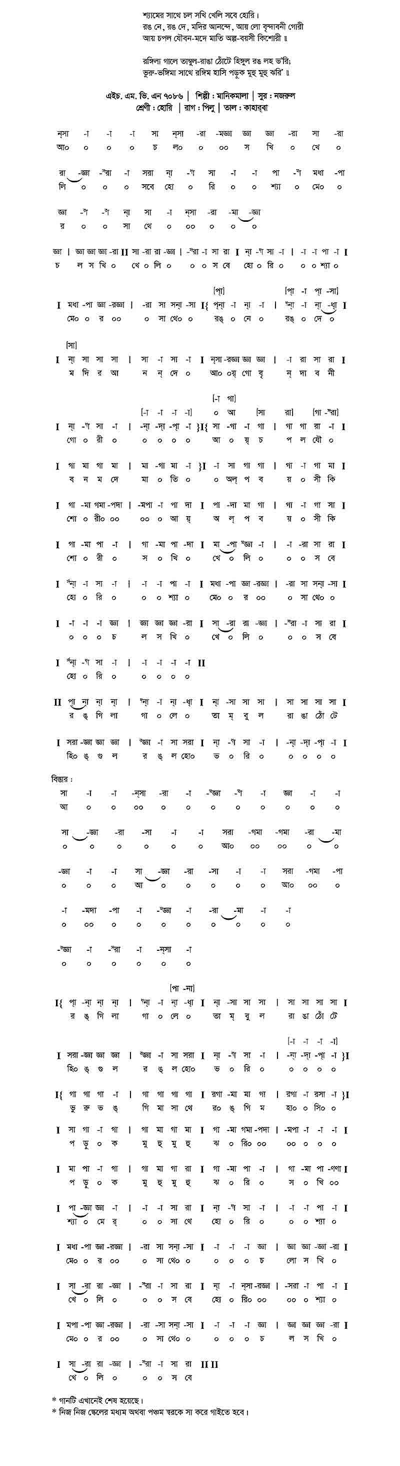 শ্যামের সাথে চল সখি খেলি সবে হোরি।