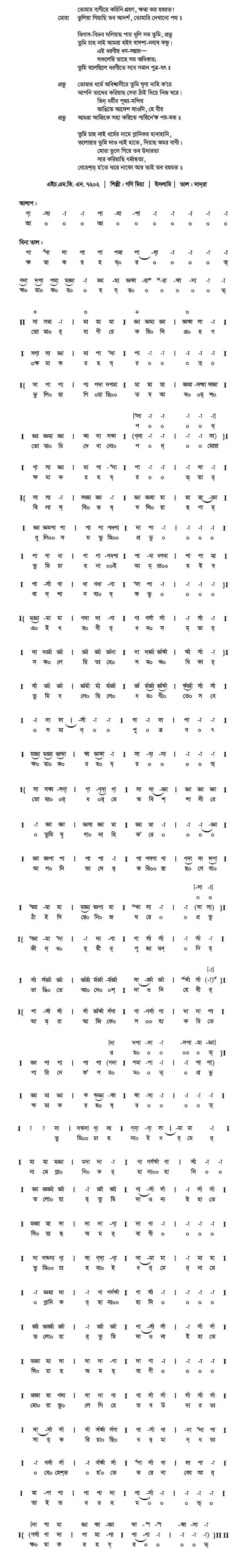 প্রভু	তোমার ধর্মে অবিশ্বাসীরে তুমি ঘৃণা নাহি ক’রে