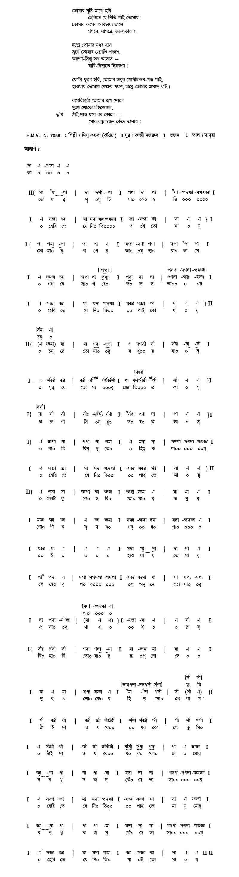 তোমার সৃষ্টি মাঝে হরি হেরিতে যে নিতি পাই তোমায়।