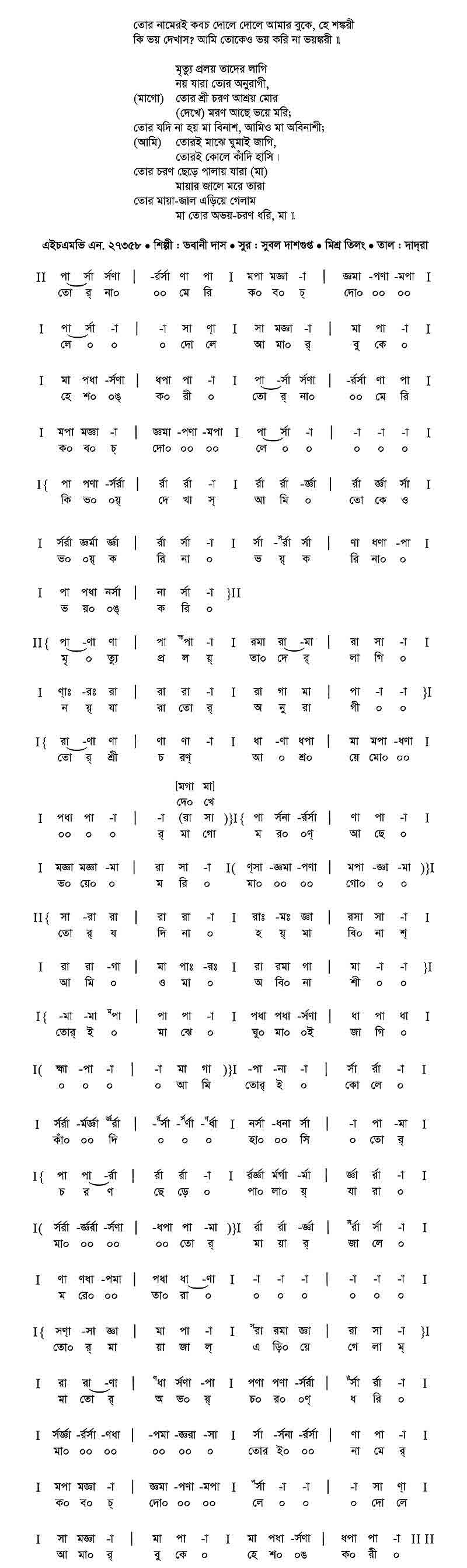 তোর নামেরই কবচ দোলে দোলে আমার বুকে, হে শঙ্করী।