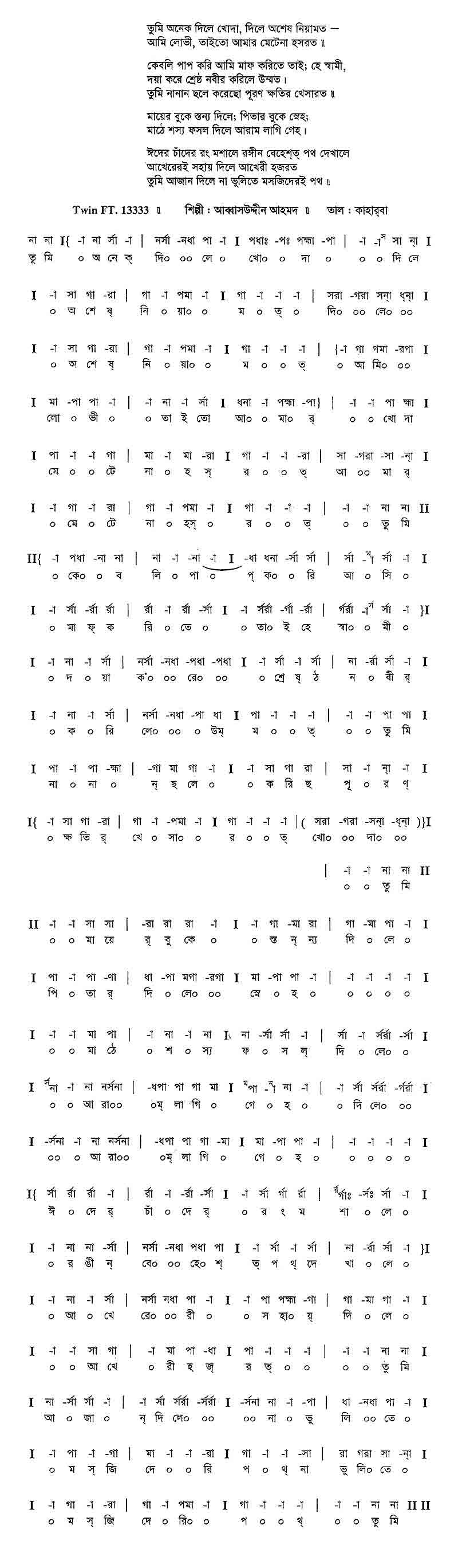 তুমি অনেক দিলে খোদা, দিলে অশেষ নিয়ামত —