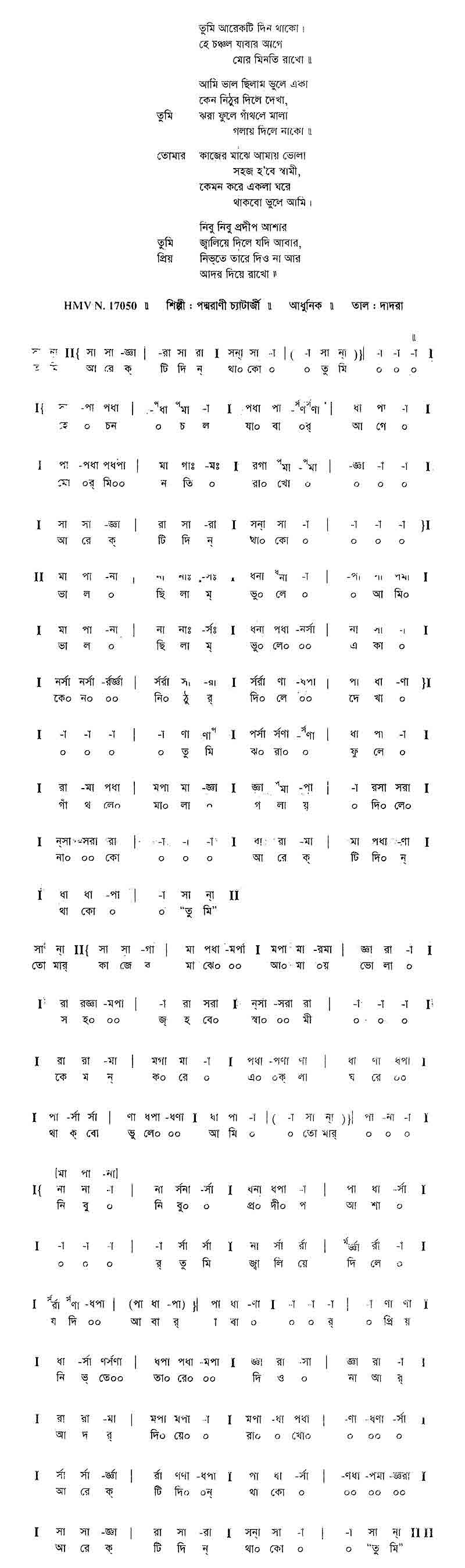 তুমি		আরেকটি দিন থাকো।