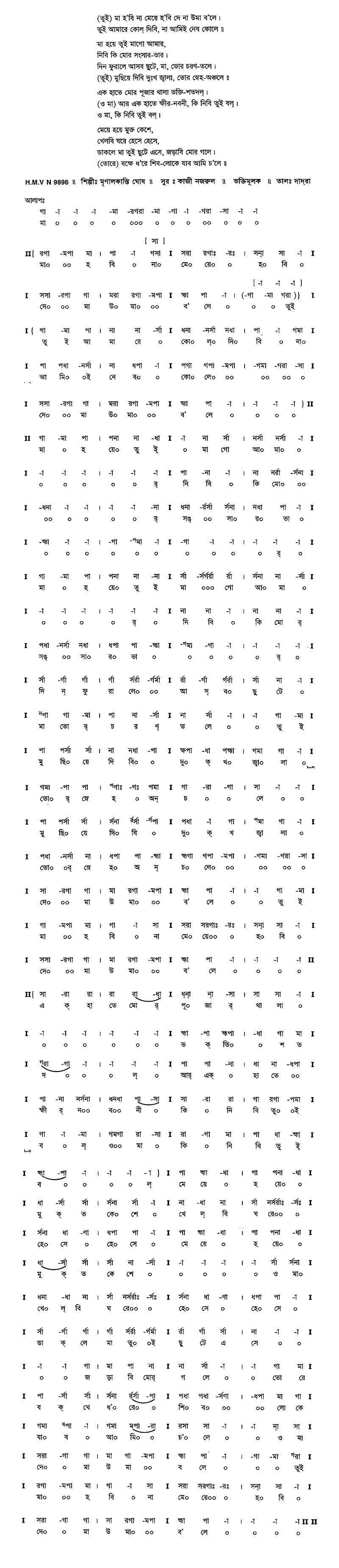 স্ত্রী	:	এসেছি তাই ফিরে পুন পথিকের প্রীতি নিয়া॥