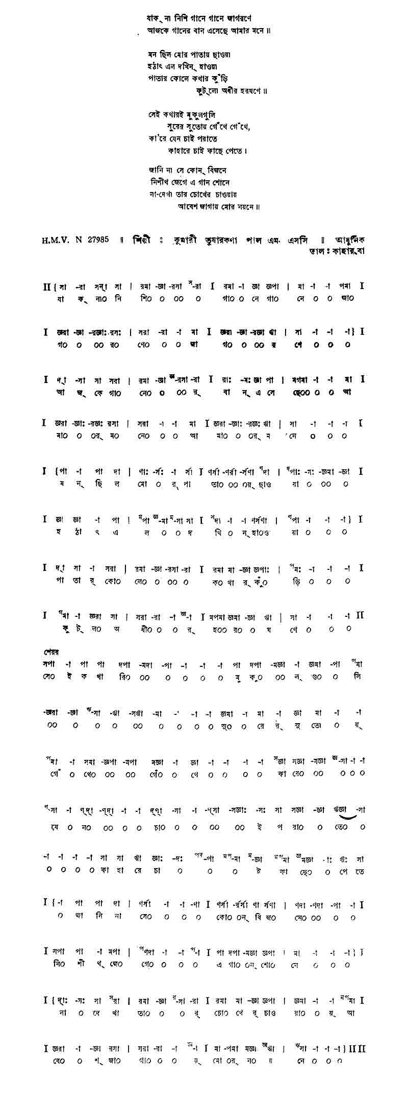 যাক্ না নিশি গানে গানে জাগরণে