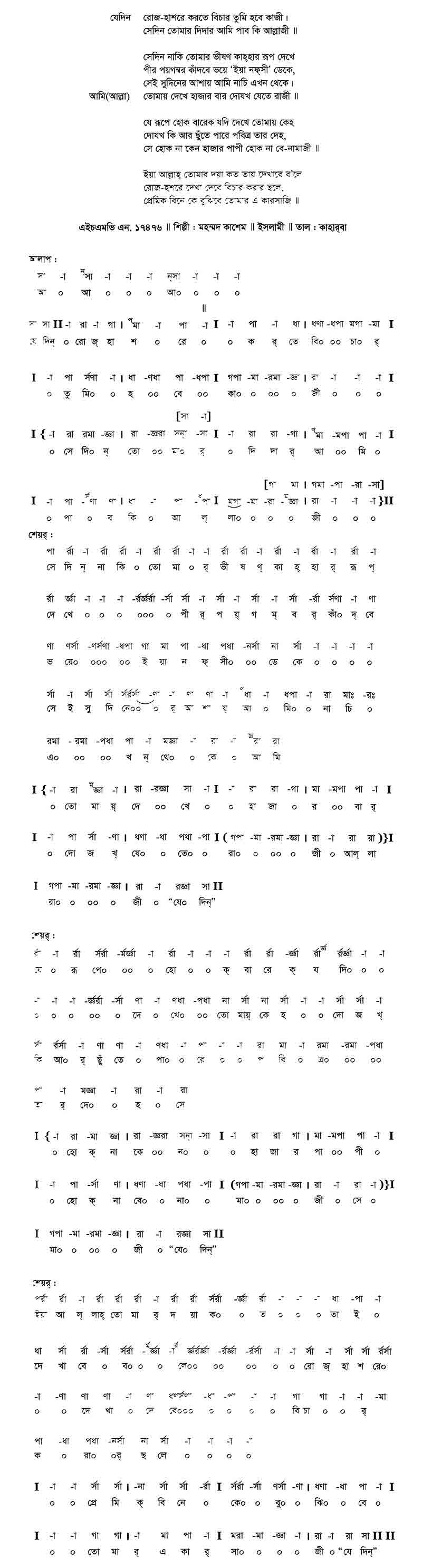 যেদিন		রোজ হাশরে করতে বিচার তুমি হবে কাজী