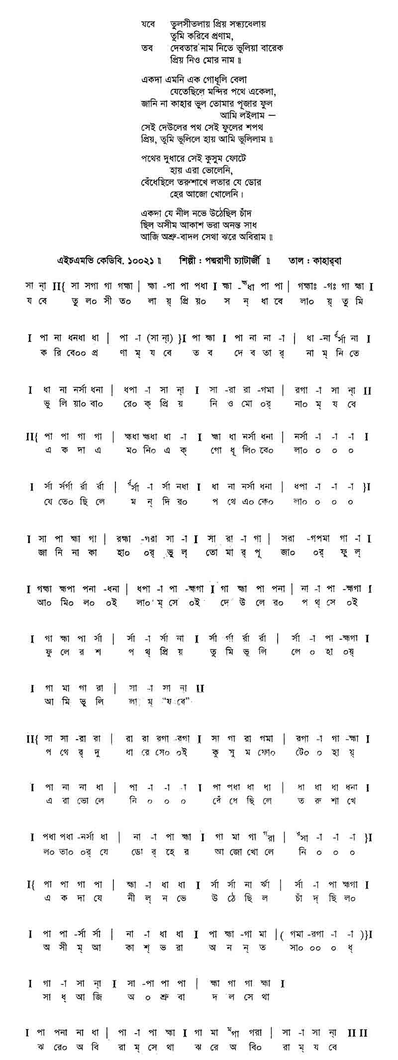 জানি না কাহার ভুল তোমার পূজার ফুল